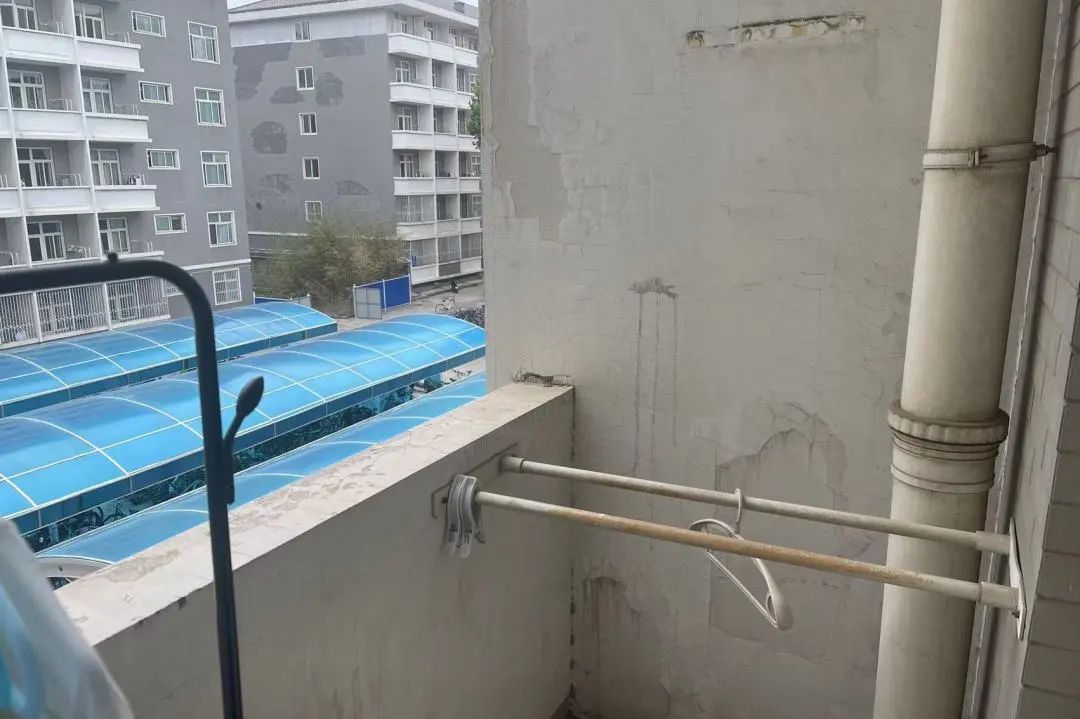 寝室阳台有两根长约1.5m的晾衣杆,可以放置晾衣绳或另购晾衣架。记得及时收回干衣服,既防止被风里的沙尘吹脏,也可给其他舍友留出空间,大风天气时也防止衣服和衣架被风吹到楼下(确实时有发生)。