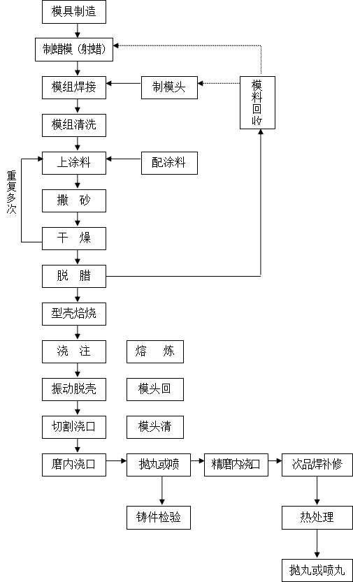 (6)典型的砂型铸造生产流程: