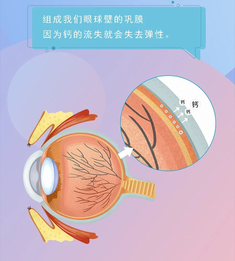 儿童在看书、写字等近距离用眼时,双眼产生集合作用,对眼球的持续压力加强会导致眼压增高,由于经常饮用碳酸饮料体内钙减少,随之巩膜中的钙下降,使眼球壁失去正常的弹性,眼球容易伸长,从而近视度数加深。