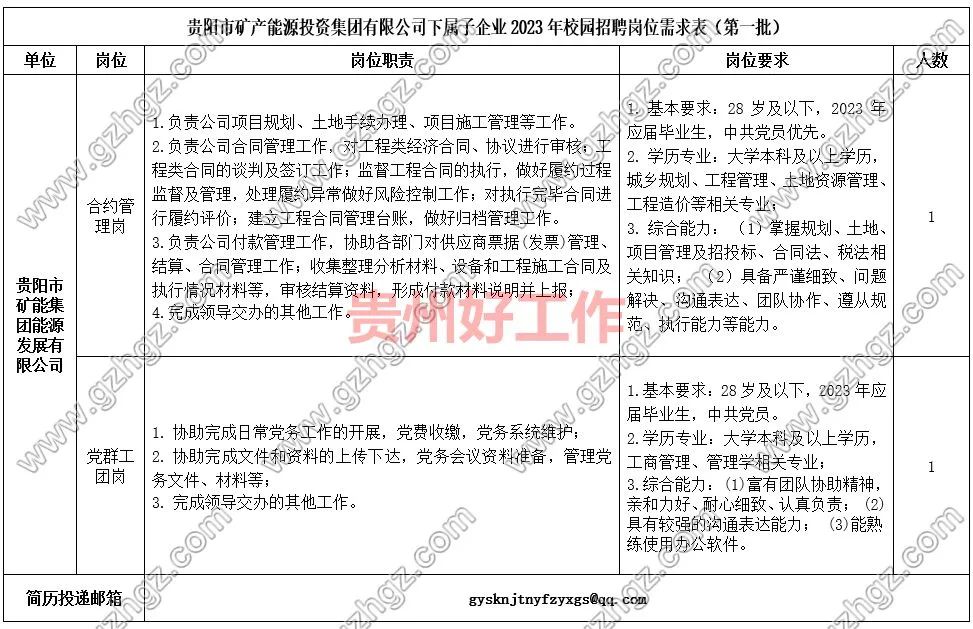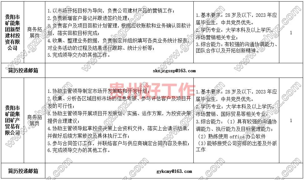 贵阳市矿能集团矿产贸易有限公司简历投递邮箱:gykcmy@163.com