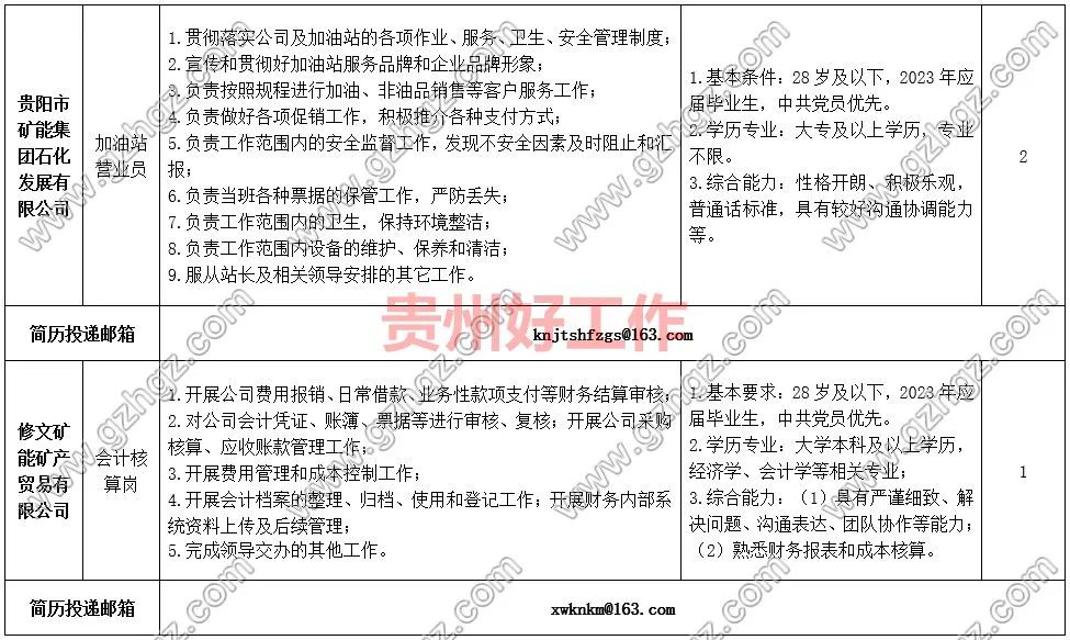 贵阳市矿能集团石化发展有限公司简历投递邮箱:knjtshfzgs@163.com