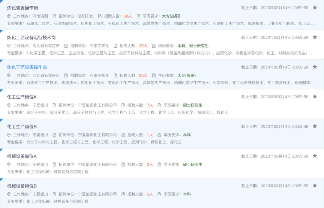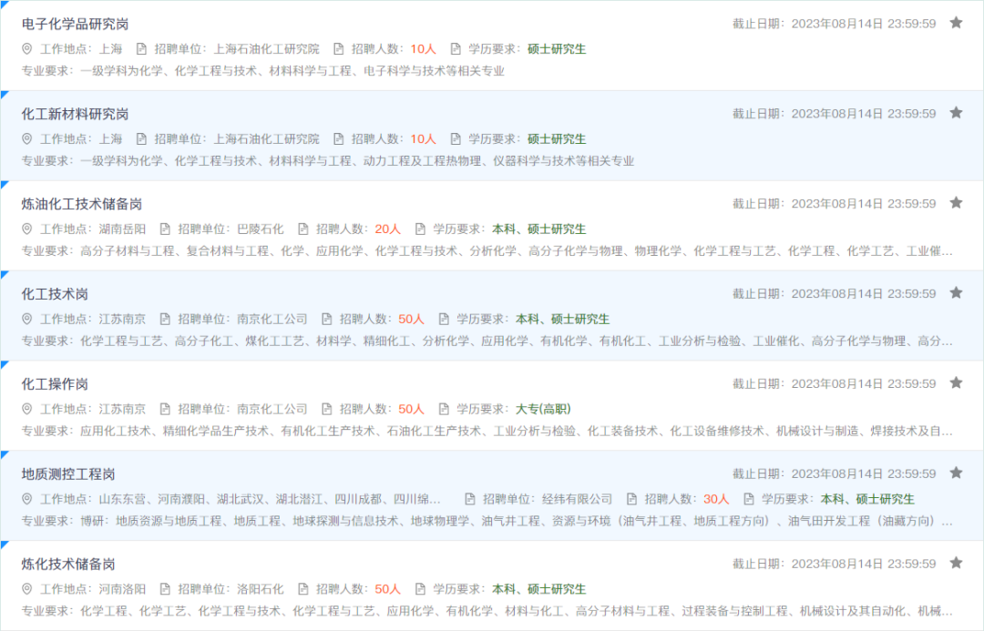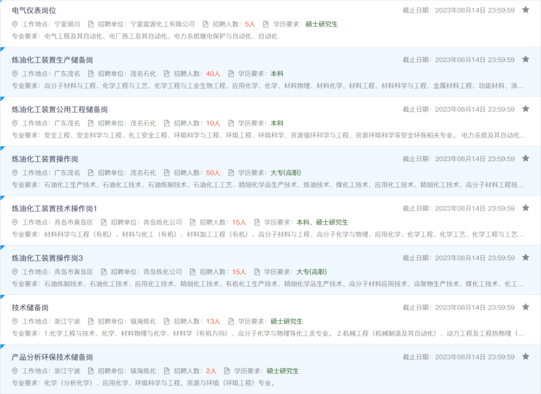 2023年全国普通高等院校统招统分应届毕业生(定向、委培除外),回国(境)后初次就业且具有教育部留学服务中心派遣资格的国(境)外留学生(毕业时间在2022年1月1日至2023年12月31日期间);遵纪守法,品行端正,团结协作,无不良行为记录,热爱石油石化事业,认同中国石化企业文化和价值观;身心健康,能适应岗位工作需要;所学专业符合招聘岗位要求,满足招聘单位业务发展需要;学习成绩优良,取得相应的学位学历等证书;西藏、青海、新疆三省区及四川、云南、甘肃三省涉藏州县毕业生在同等条件下优先录取。