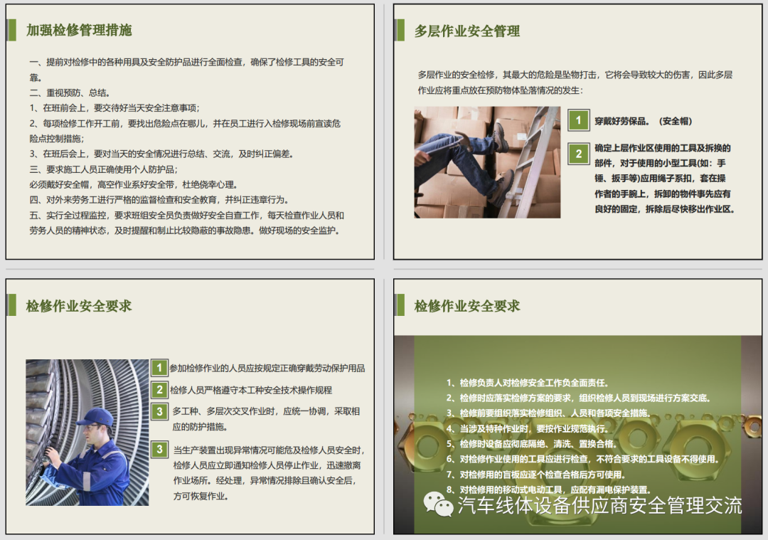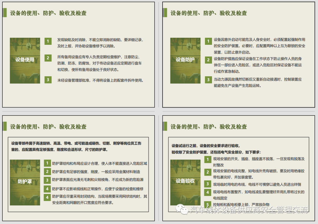 本公众号为共享平台,主要针对汽车行业线体设备供应商项目现场安全管理类资料、资讯发布与共享,有好的建议与想法请关注公众号后留言,可以邮件方式获取公众号内原文件,获取时请列出文件名称。邮箱地址:sunhongbinggbzj@163.com