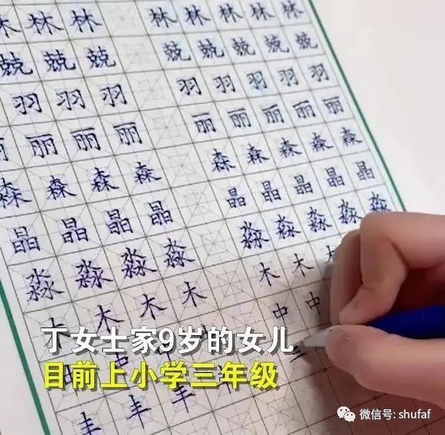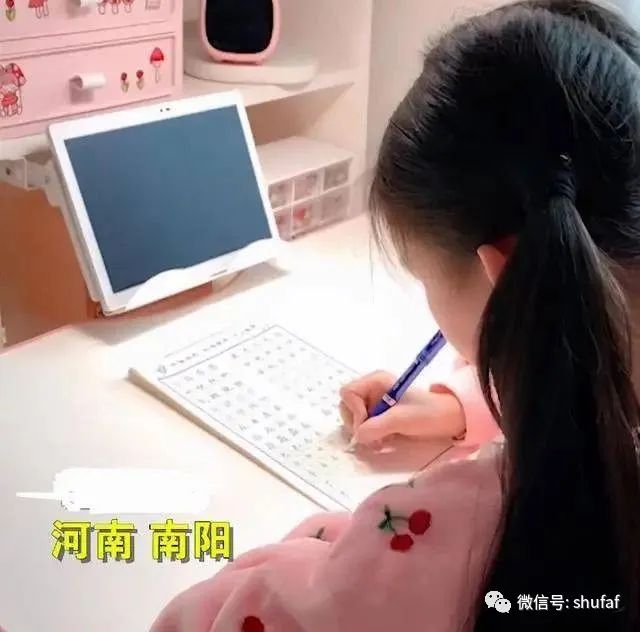 丁女士的女儿自小就表现出对书法的喜爱,所以练习起来也很刻苦。在学校经常受到老师的表扬,同学们也很羡慕,这样她练起来也就更有动力。
