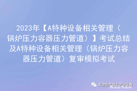 A特种设备相关管理(锅炉压力容器压力管道)考试总结考前必练!安全生产模拟考试一点通每个月更新A特种设备相关管理(锅炉压力容器压力管道)复审模拟考试题目及答案!多做几遍,其实通过A特种设备相关管理(锅炉压力容器压力管道)作业考试题库很简单。