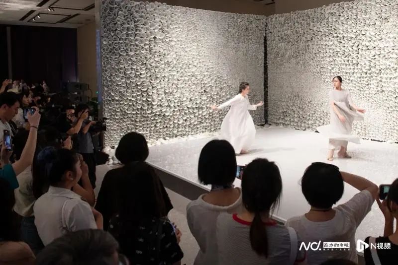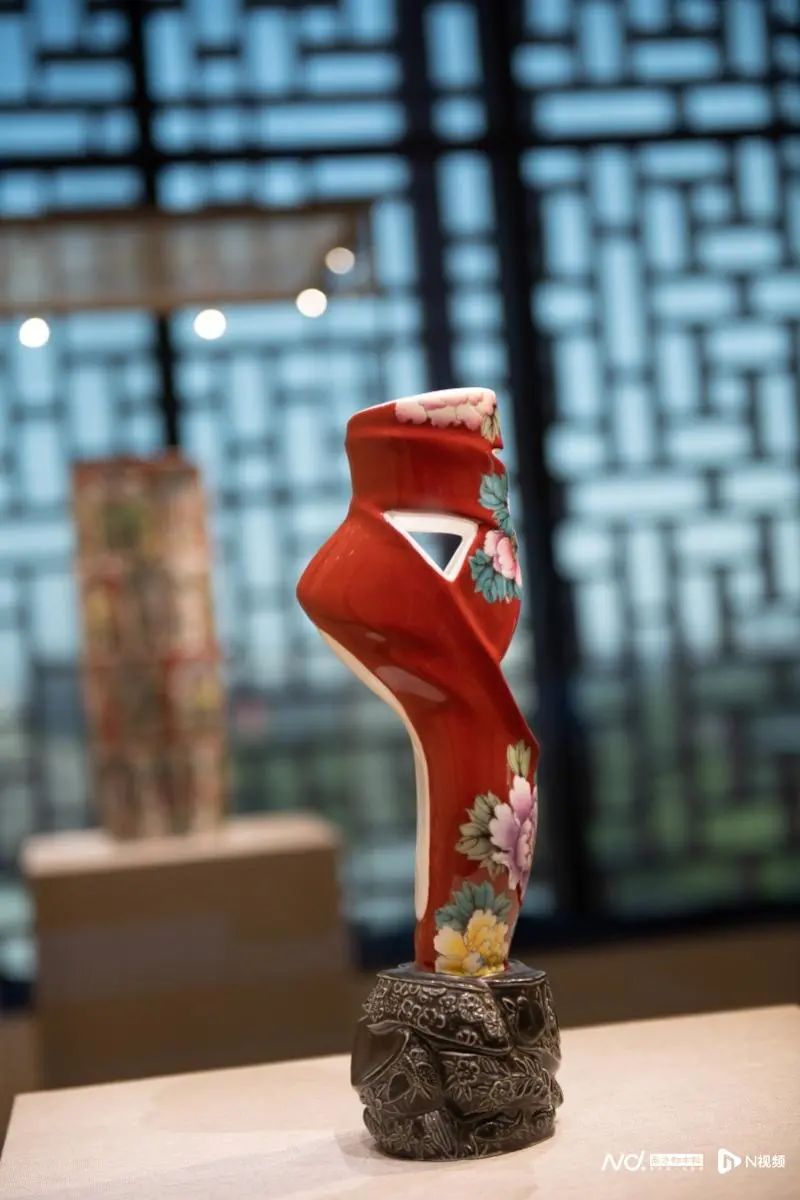 双人舞《香山射鼓》,编舞:田湉 表演者:朱耘君 王凯雅(北京舞蹈学院)在《花的精神》对面展出的《生命之盒》是一个瓷艺壁画构成的体现气韵生动的更大型的舞台。在这件作品中,由中国艺术研究院刘蕾、王礼、吴芮逸、杨新月等诸位演奏家演出的器乐重奏《茉莉花》,雀跃婉转的乐曲与艺术空间相呼应,共同为现场观众带来一场视听的享受。在《生命之盒》中还上演了同样由北京舞蹈学院田湉编舞的双人舞《香山射鼓》由舞者朱耘君、王凯雅演出,留白幻境,令观众沉浸其中。