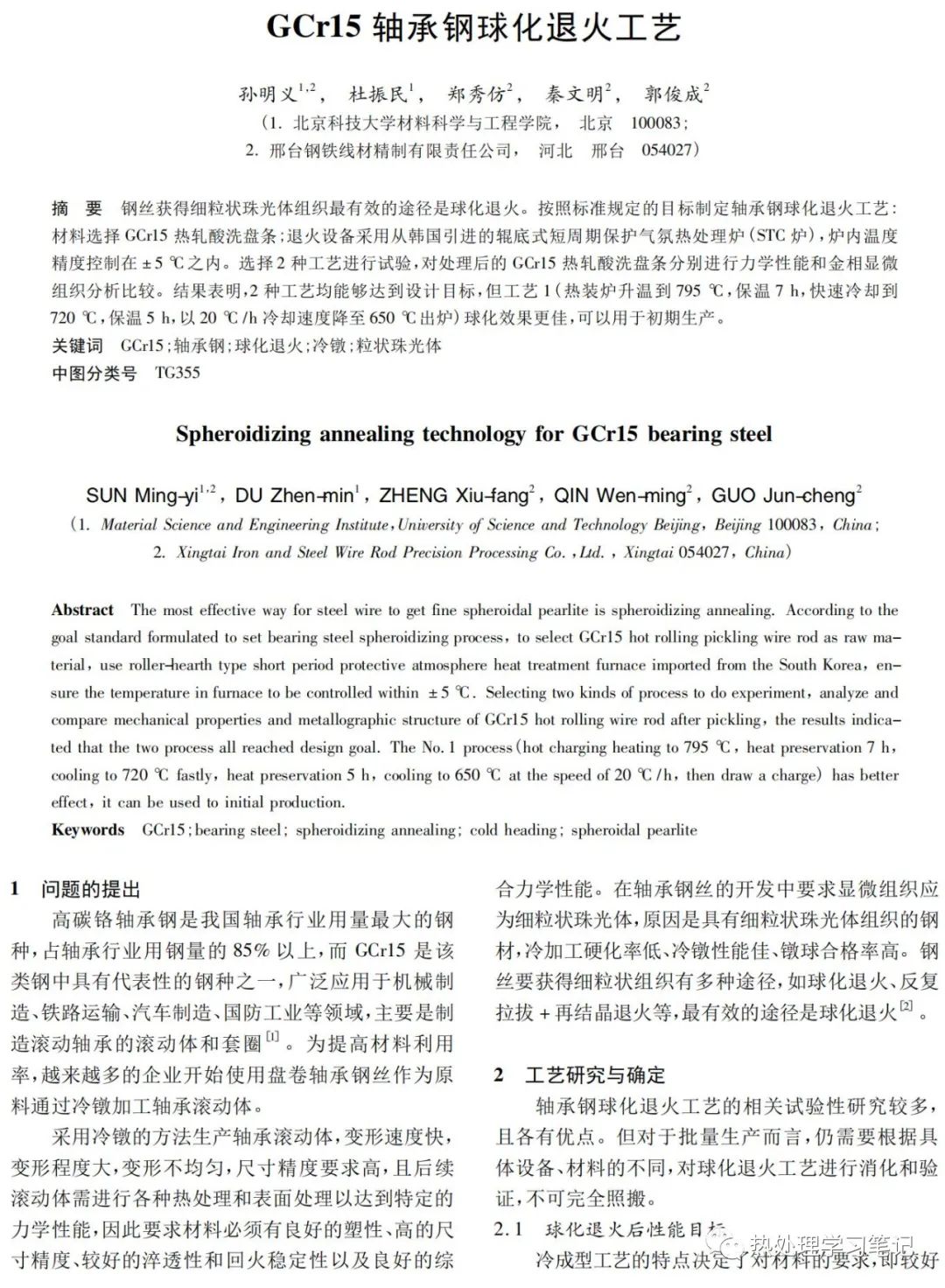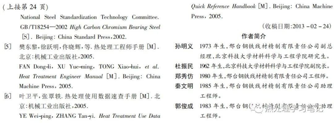 [1]孙明义, 杜振民, 郑秀仿,等. GCr15轴承钢球化退火工艺[J]. 金属制品, 2013, 39(4):22-24.