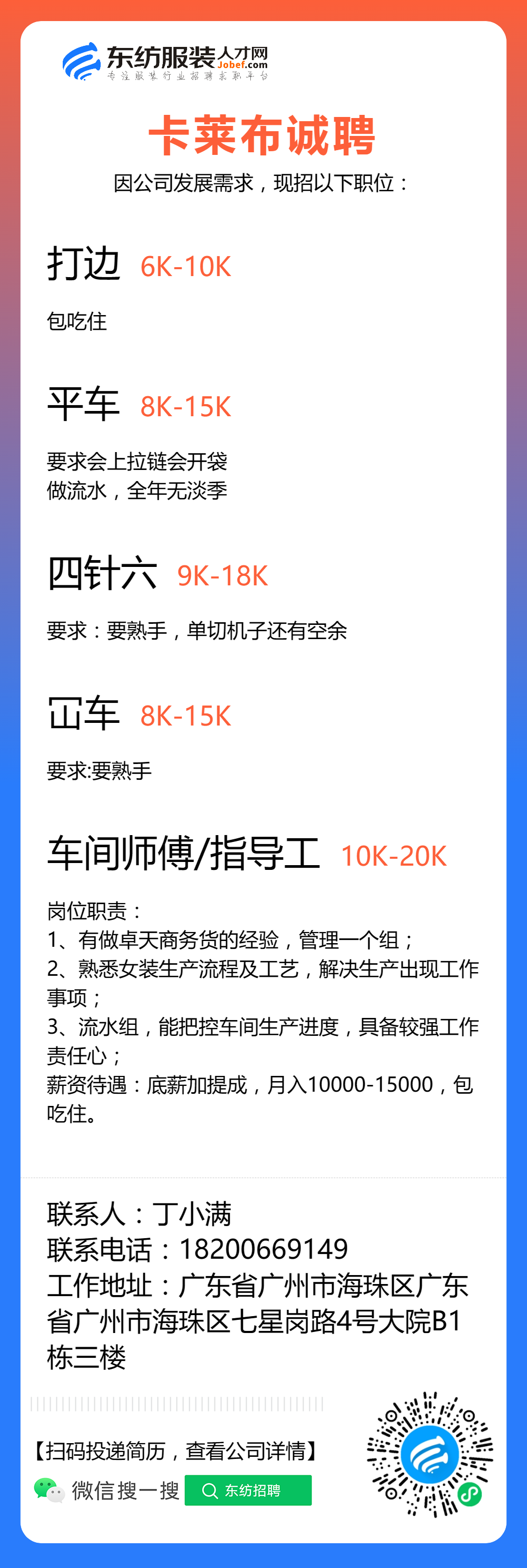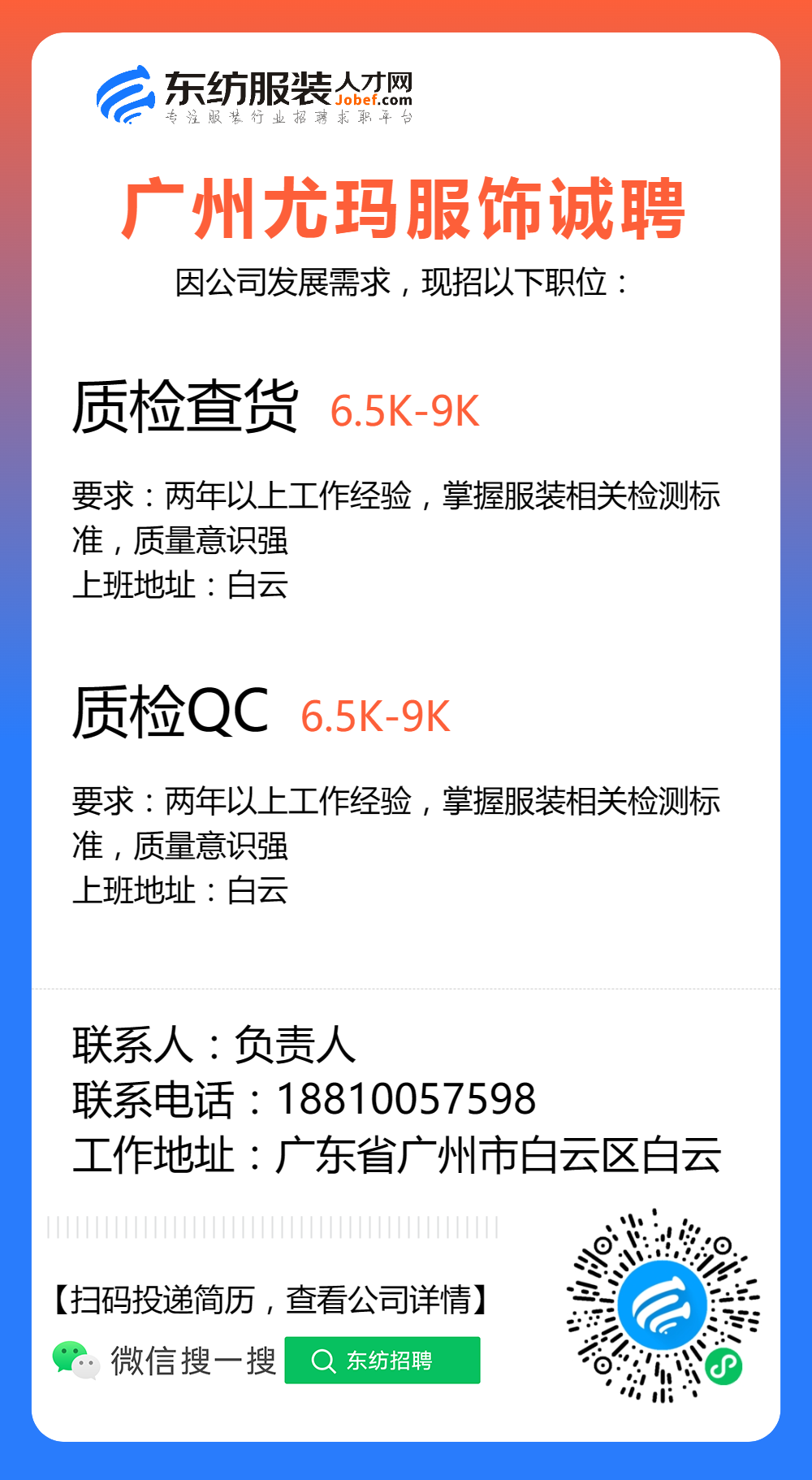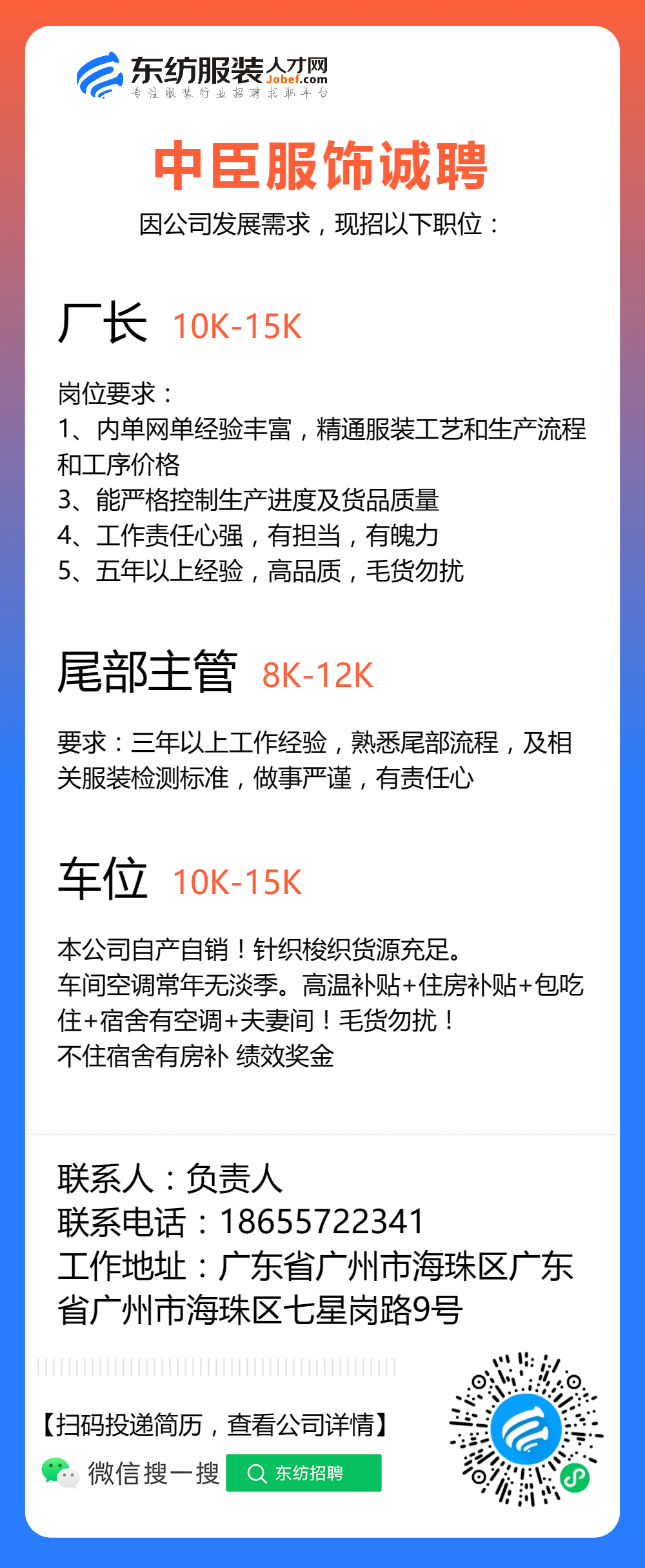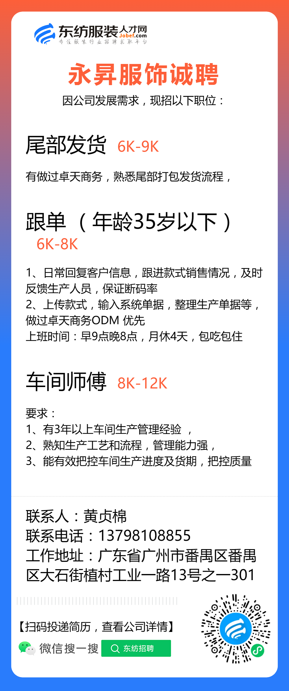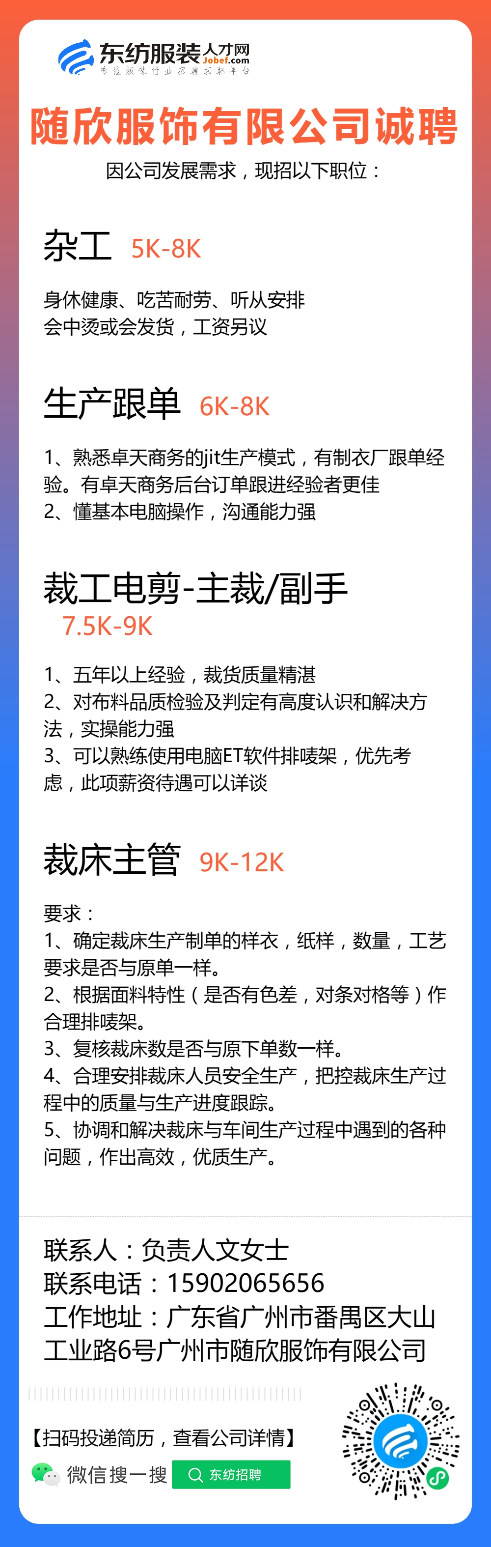 服装招聘·工厂类丨8. 13 号,跟单、采购、车位、裁床、尾部……