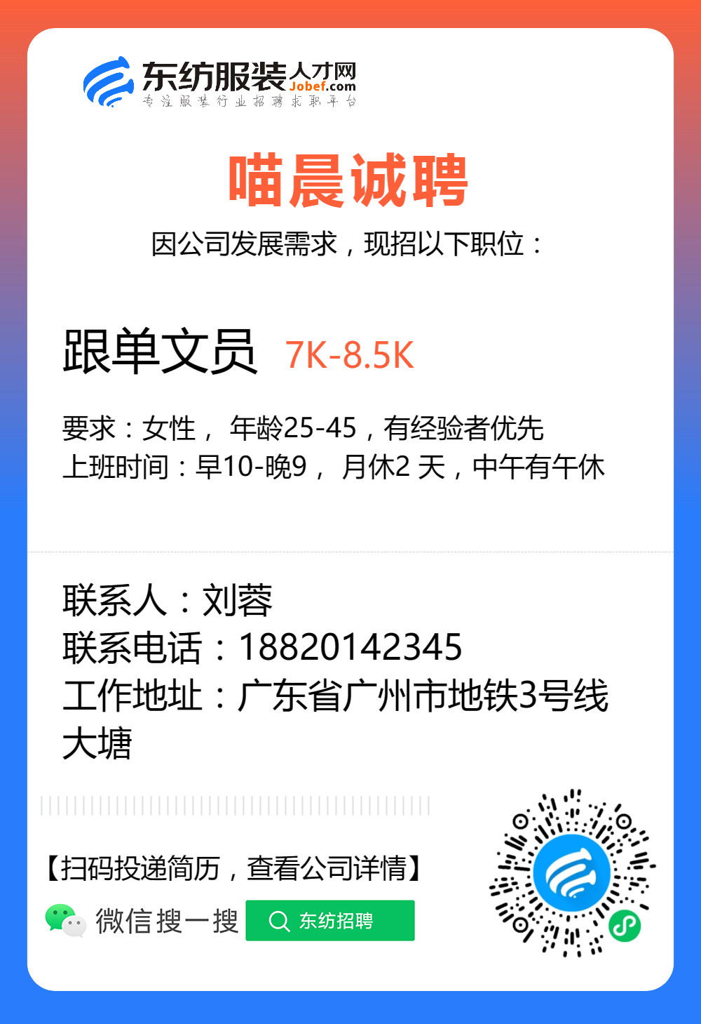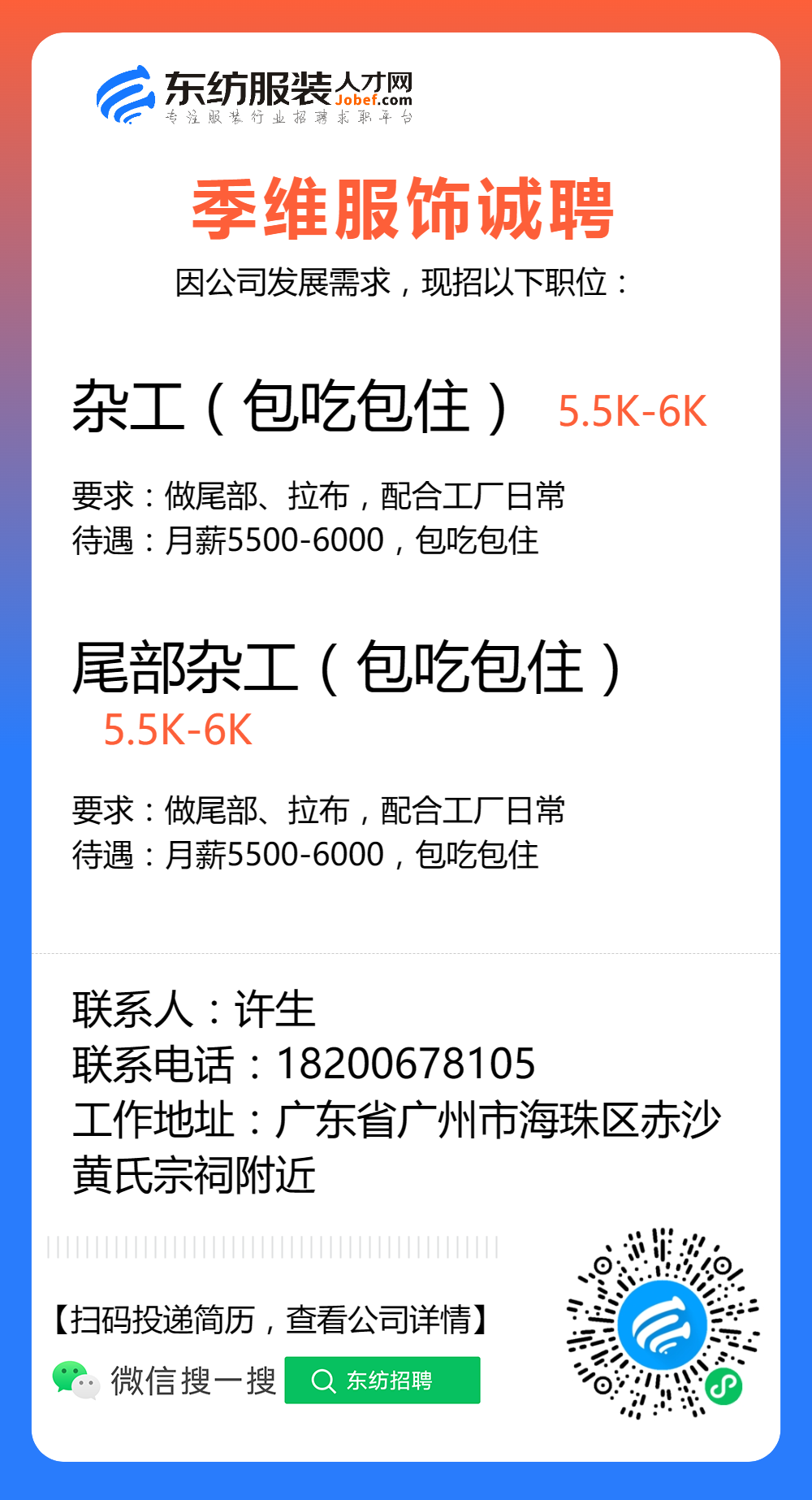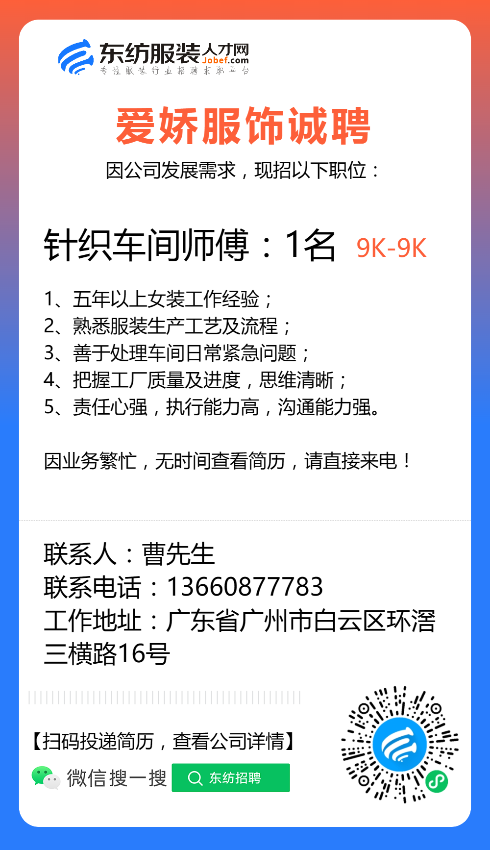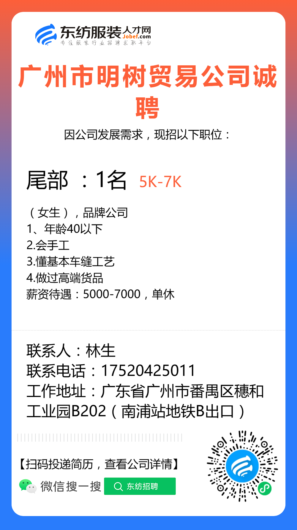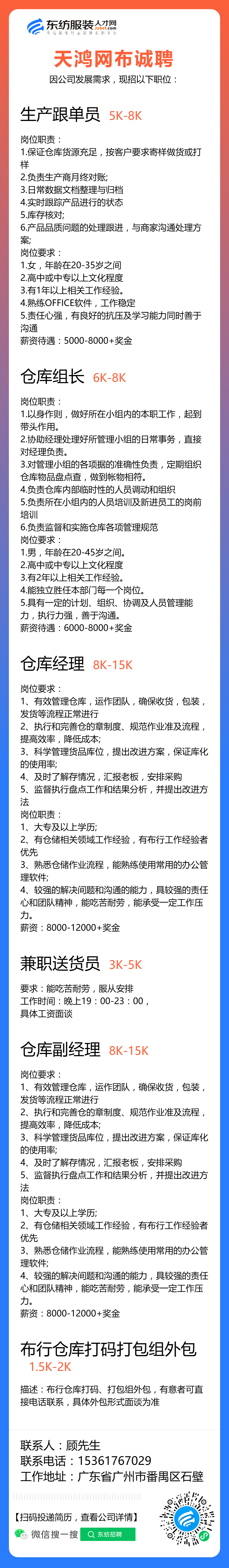 服装招聘·工厂类丨8. 13 号,跟单、采购、车位、裁床、尾部……