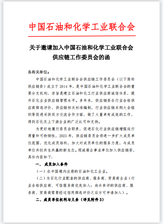 入会邀请丨中国石油和化学工业联合会供应链工作委员会
