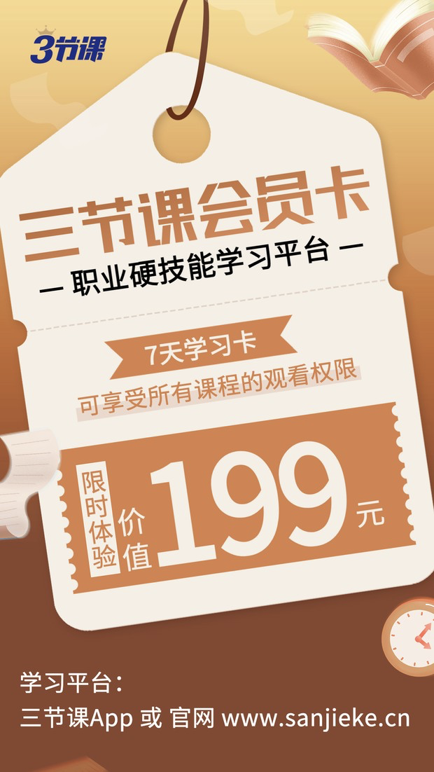 八月,正是为金九银十的业务黄金期做准备的好时机!三节课也为你准备了职场升级的好武器!