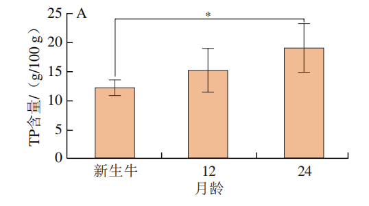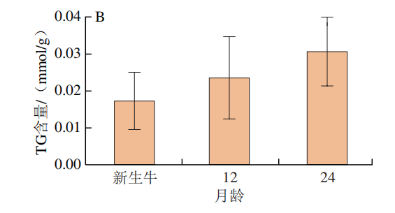 3.不同饲养月龄‘夏南’牛背肌TP与TG水平