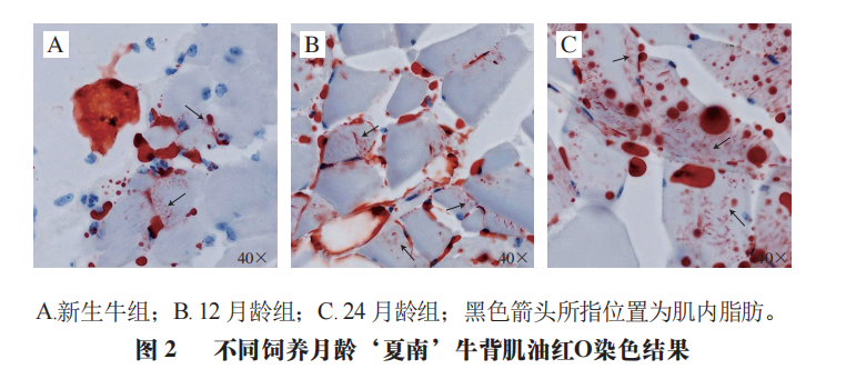 2.不同饲养月龄‘夏南’牛背肌油红O染色结果