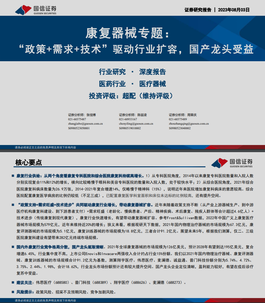 后台回复:《国信证券-医疗器械行业康复器械专题:“政策+需求+技术”驱动行业扩容,国产龙头受益》即可获取完整版报告
