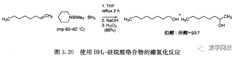硼氢化试剂的最新发展是BH3与硅烷胺的络合物[41]。这些稳定、结晶状的试剂提供了在一些小规模实验上方便使用的硼烷的新形式(图3. 20)。
