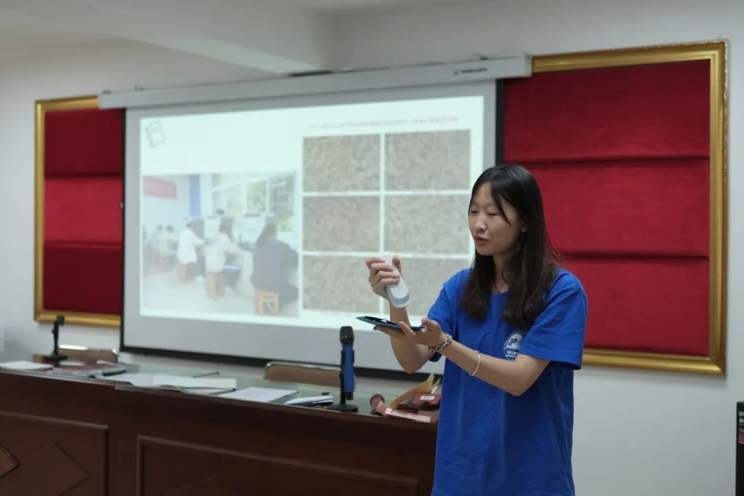 理论普及宣讲团成员严晓灿以“什么是3D打印”为开场白,引领社区青少年走入3D打印的奇妙课堂。随后,严晓灿从赛前准备、赛中练习、比赛内容三方面出发,带领社区青少年深入了解金相大赛,明晰新材料的研发与制备。