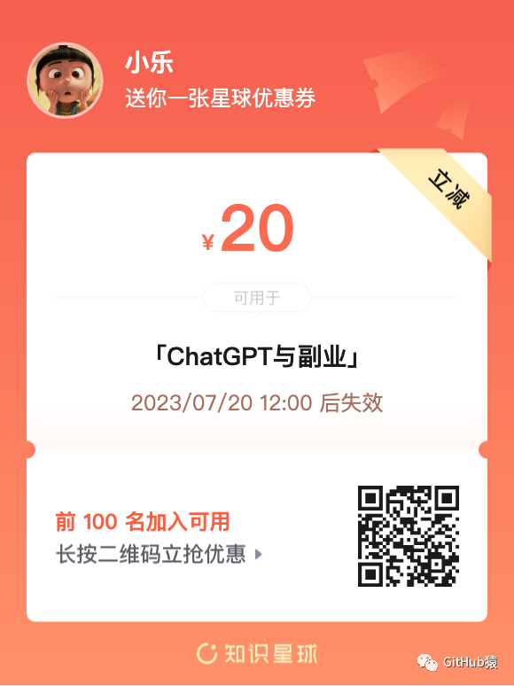 为了跟上AI时代我干了一件事儿,我创建了一个知识星球社群:ChartGPT与副业。想带着大家一起探索ChatGPT和新的AI时代。