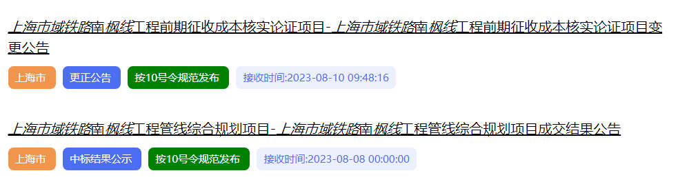8月10日,《南枫线工程前期征收成本核实论证项目》更正招标信息,开标时间及投标截止时间均调整为2023年8月28日。