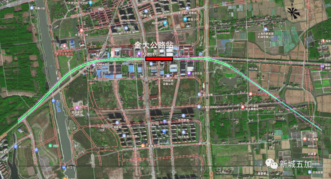 金大公路站,设在金大公路贤浦路路口东侧,未来可与奉贤线换乘,这也意味着奉贤线明确了走贤浦路;