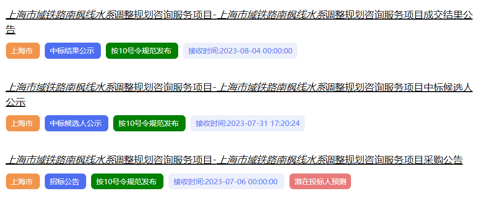 8月9日,《南枫线工程管线综合规划项目》完成招标。