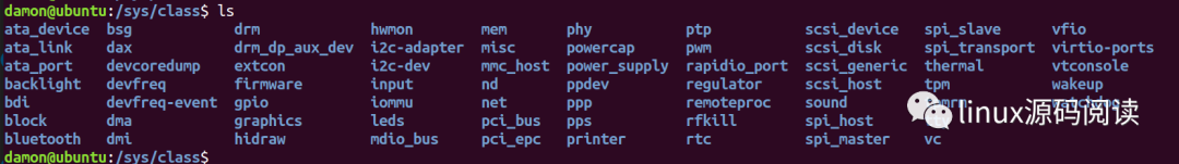 进入到/sys/class目录,可以看到有各种各样的class。