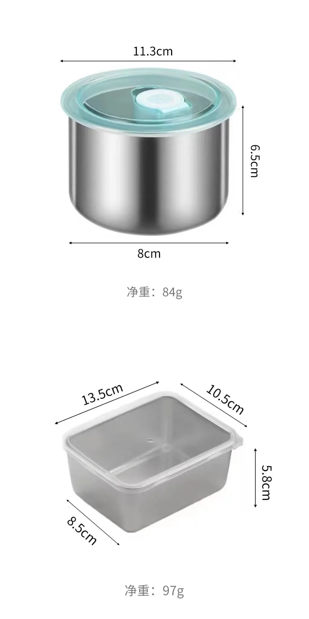 这种盒体是304不锈钢的保鲜盒,更加轻巧、耐摔、不易生锈和腐蚀。