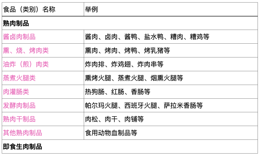 (1)熟肉制品:酱卤肉制品、烧肉、烤肉、油炸肉、西式火腿、肉灌肠、熟肉干制品等;