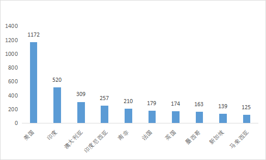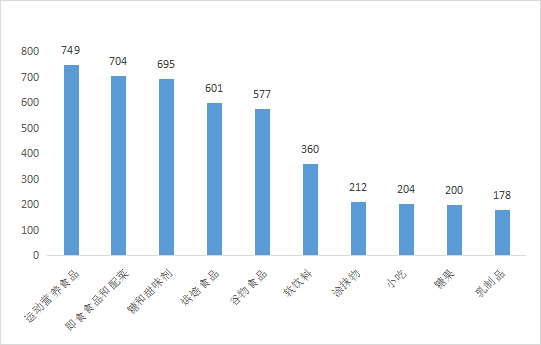 根据数据,美国含有的低GI食品最多(1172种,主要:谷物食品263种、运动营养食品164种、软饮料160种、烘焙食品128种),其次是印度(520种,主要:即食食品和配菜153种、烘焙食品87种、糖和甜味剂70种、小吃53种)和澳大利亚(309种,主要:即食食品和配菜60种、谷类食品56种、烘焙食品39种)。(图2)