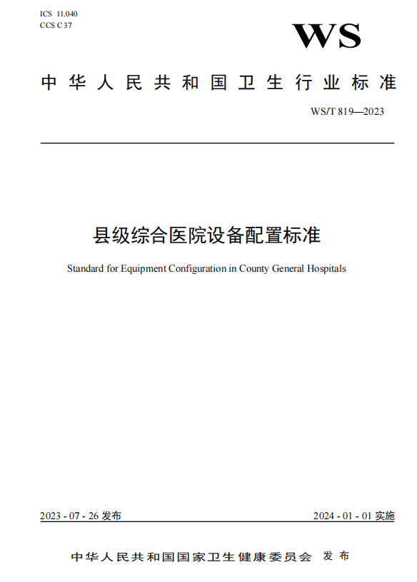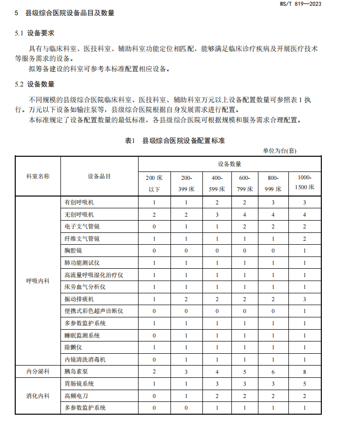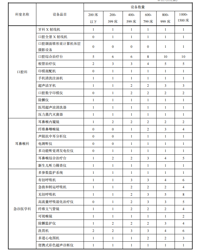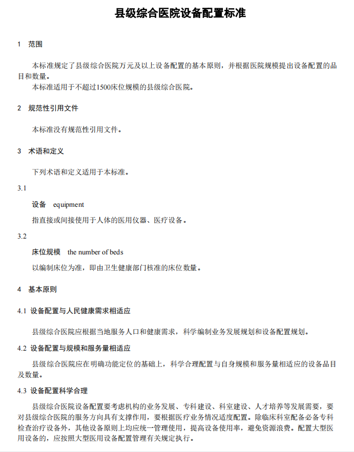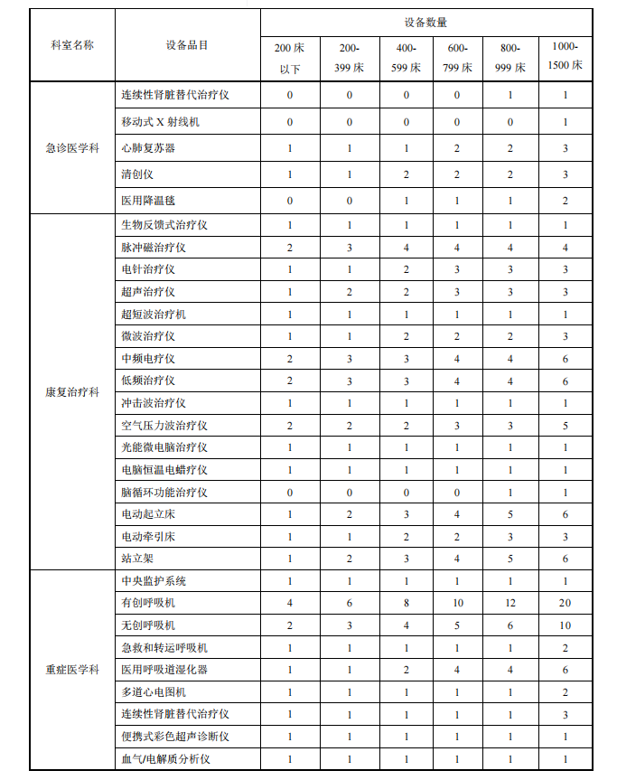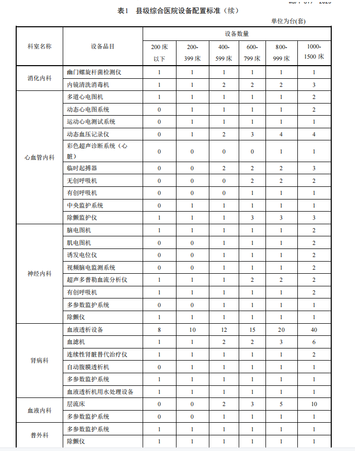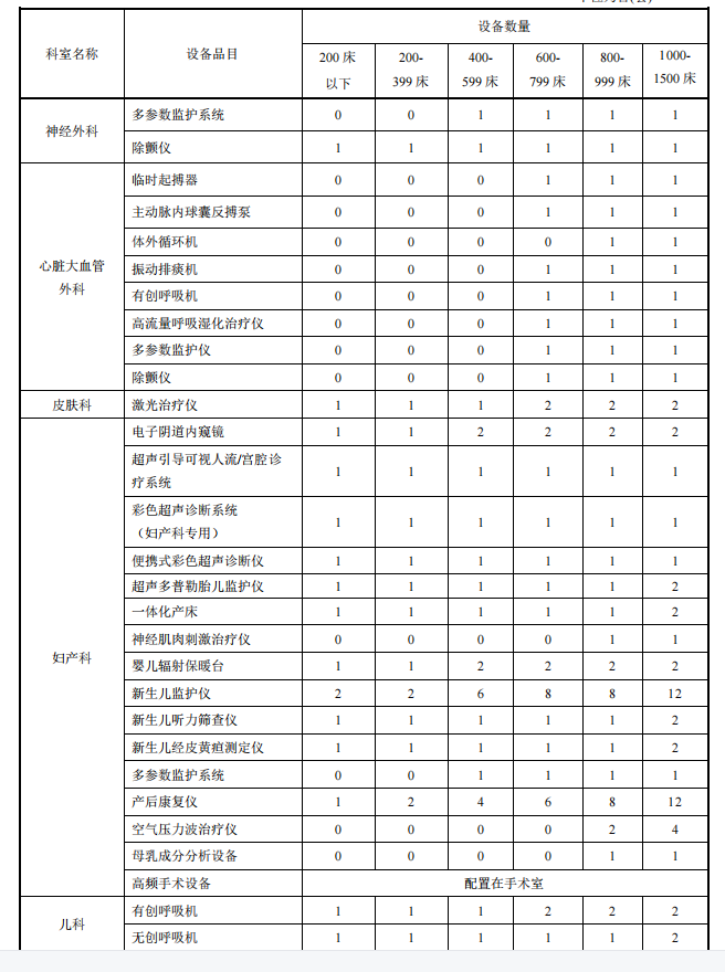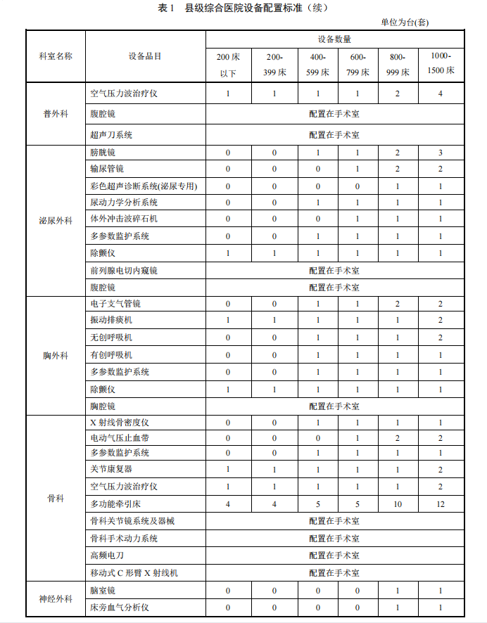 【卫建委发布】县级综合医院设备配置标准