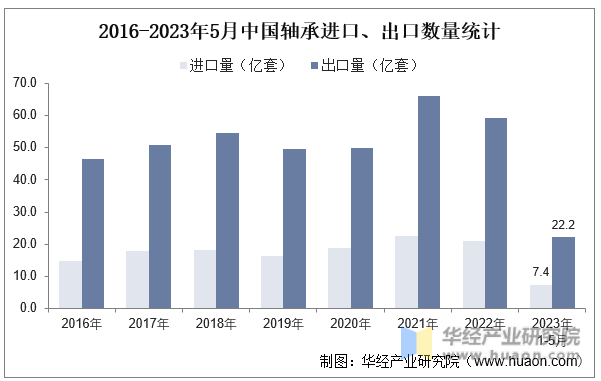 2016-2023年5月中国轴承进口、出口数量统计