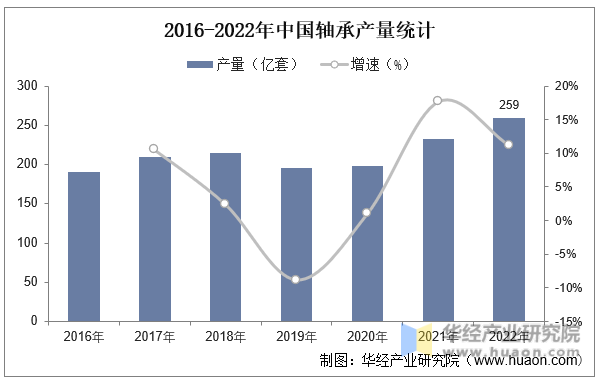 2022年我国轴承产量259亿套,相比2021年的233亿套增长11.2%。