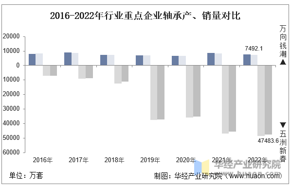 2016-2022年行业重点企业轴承产、销量对比