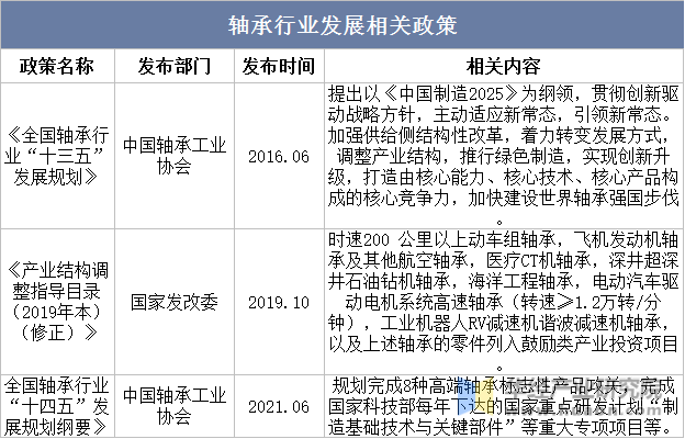 轴承行业发展相关政策