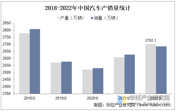 2018-2022年中国汽车产销量统计