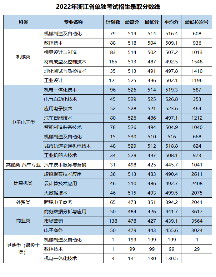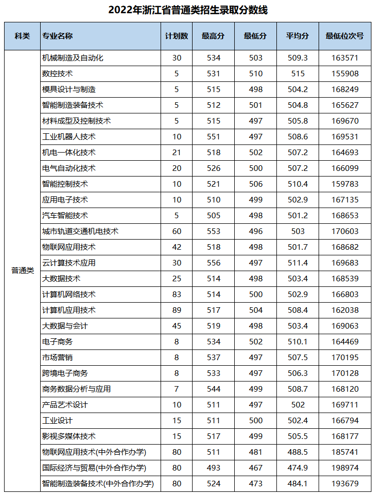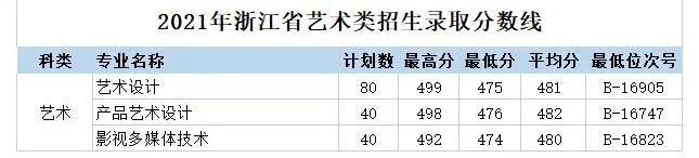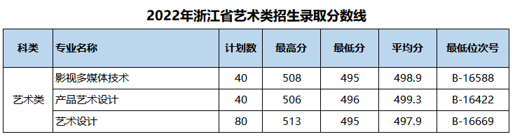浙江省艺术类录取分数线(2022年)