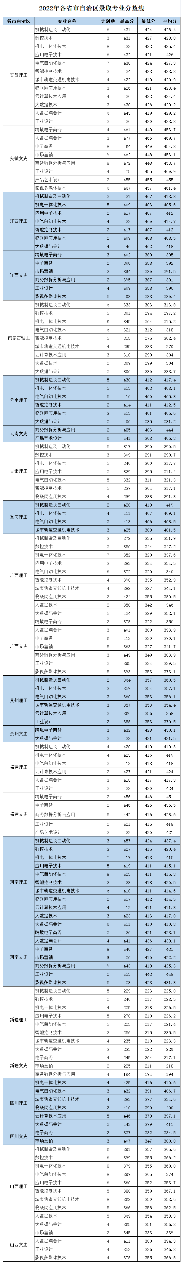 各省市自治区招生录取分数线(2022年)