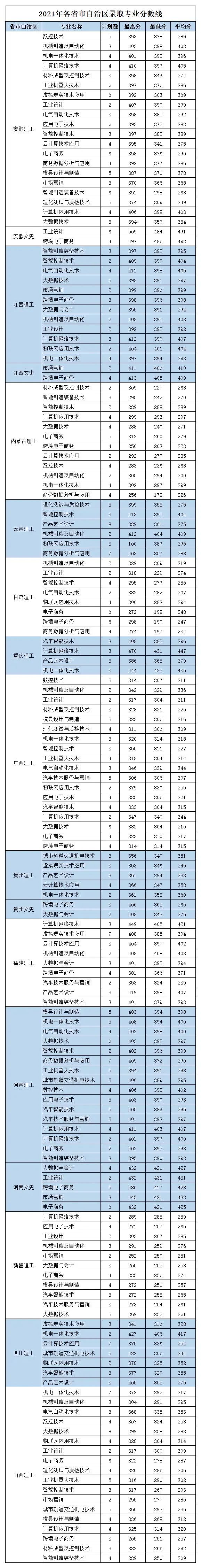 各省市自治区招生录取分数线(2021年)
