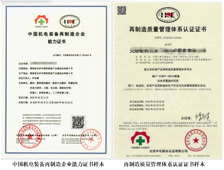 为推进机电产品再制造行业技术水平、质量管理及企业能力提升,推进再制造产业高质量发展,根据《中华人民共和国循环经济促进法》、国务院《关于加快建立健全绿色低碳循环发展经济体系的指导意见》(国发[2021]4号)及工信部《工业领域碳达峰实施方案》(工信部联节〔2022〕88号)等文件精神,中国机电装备维修与改造技术协会与北京中化联合认证有限公司联合开展机电装备再制造企业能力评定和再制造质量管理体系认证工作,该认证是在再制造产品认定的基础上,对从事再制造行业企业能力的一项全面评价。认证将按照产品分类,对企业的再制造能力进行认证。机电装备再制造企业能力证书、再制造质量管理体系认证证书对企业来说具有重要的意义和价值:(一)证明企业实力:从事再制造企业的生产、加工和服务能力,是决定企业市场定位和未来发展的重要标准和依据,得到国家行业协会的评价、认证,对企业的业务开拓和产品的市场竞争具有及其重要的现实意义。(二)增强行业信任:中国机电装备维修与改造技术协会是国际一级行业协会,也是国内唯一一家专注于维修改造的全国性技术协会,北京中化联合认证有限公司是国内知名的专业认证、评价公司。协会的权威性、技术性和认证的专业性是获得同行和用户信任的基本条件。当前,该证书也是由中机维协推出的国内唯一的再制造企业能力认证证书,具有极高的可信度和公信力。(三)规范企业管理,提高产品(服务)质量:该评价和认证程序标准,涵盖了企业生产、经营的全部范围,对企业生产过程、质量控制、人员管理、技术能力、设备状况等进行全面的分析、评价,最终结论也是企业帮助企业提升内部管理的一项重要参考依据。有助于提高企业的制造和再制造过程管理和质量控制,确保再制造的产品能够达到更高的技术标准和产品性能,提高企业产品的市场占有率。(四)政府认可:该能力评定证书和质量管理认证的评审细则是在协会主管部门指导下完成的,完全符合当前国家再制造产品的相关管理标准,是政府对企业整体技术水平和生产、加工、服务能力的重要参考依据。通过评价的企业,可以获得当地政府的认可,稳定企业生产局面,为企业转型升级提供便利。同时也有助于加强对再制造行业的规范管理,保障公众利益、维护市场秩序和推动行业健康发展。(五)推动可持续发展:机电装备再制造是资源循环利用和环境保护的重要举措。通过评价并持有该证书,证明企业在安全、环保和产业政策上符合当前国家相关法律法规和行业政策,是企业可持续发展的基本条件。有助于减少资源浪费,提升环保能力,改善经营环境,促进经济与社会的协调发展。(一)持有有效的营业执照,经营范围覆盖申请的业务范围。