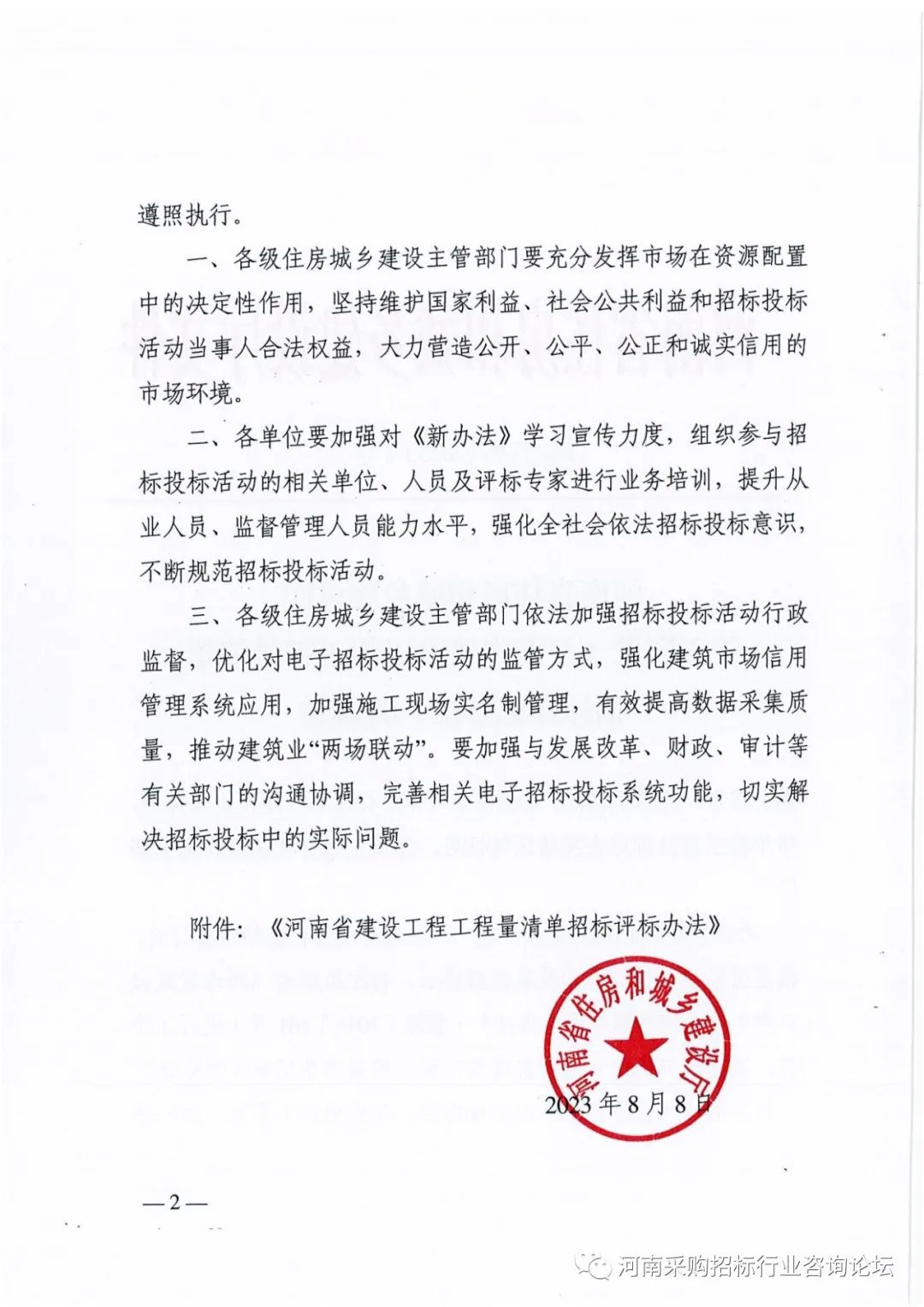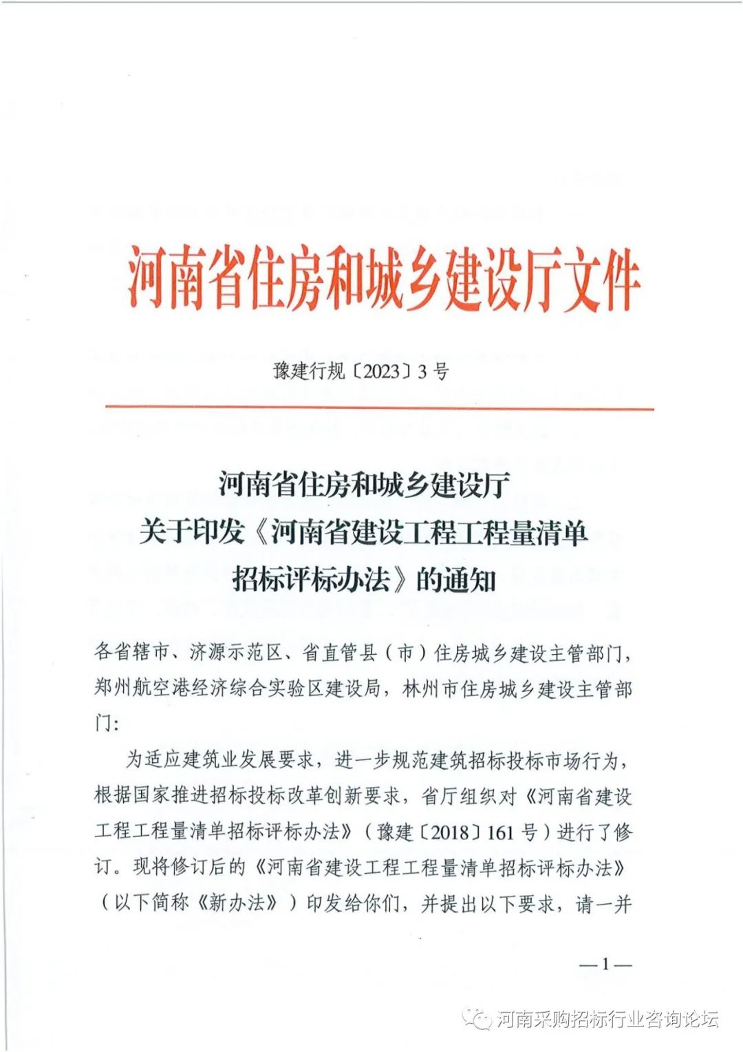 《河南省建设工程工程量清单招标评标办法》(豫建行规【2023】3号)
