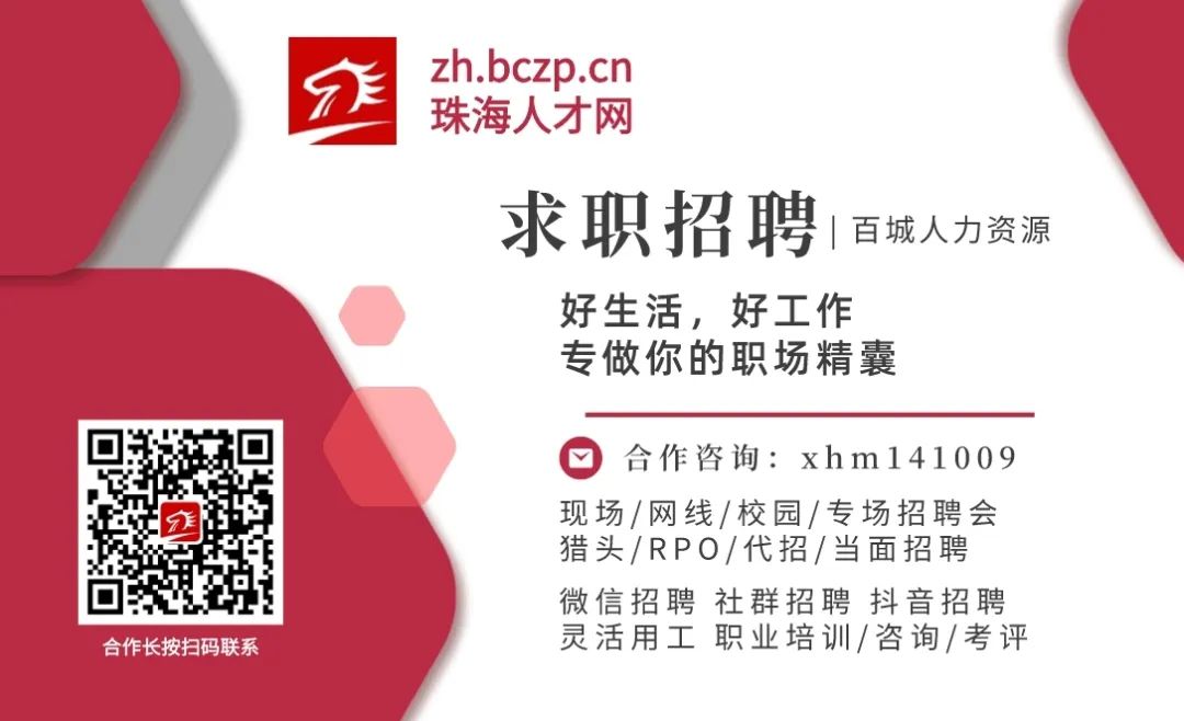 更多本地优质岗位关注珠海百城招聘公众号