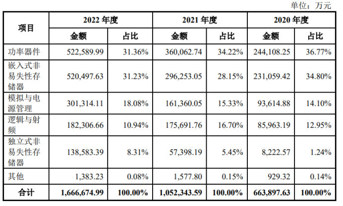 华虹半导体是全球领先的特色工艺晶圆代工企业,也是行业内特色工艺平台 覆盖最全面的晶圆代工企业。公司立足于先进“特色 IC+功率器件”的战略目标, 以拓展特色工艺技术为基础,提供包括嵌入式/独立式非易失性存储器、功率器 件、模拟与电源管理、逻辑与射频等多元化特色工艺平台的晶圆代工及配套服务。公司主营业务收入如下: