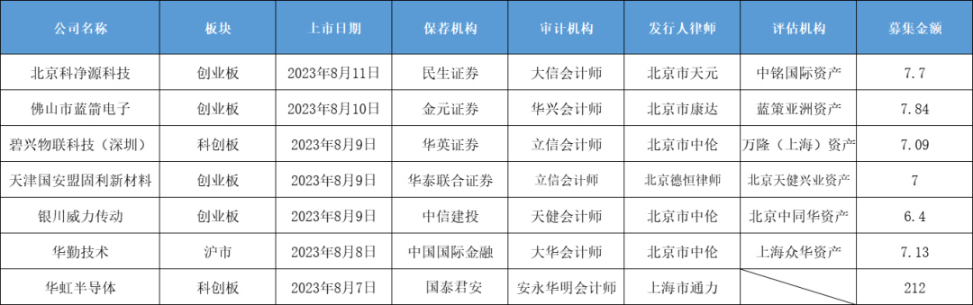 7、华虹半导体8。7日发行上市,发行价52元,市盈率34.71倍,市值871亿。
