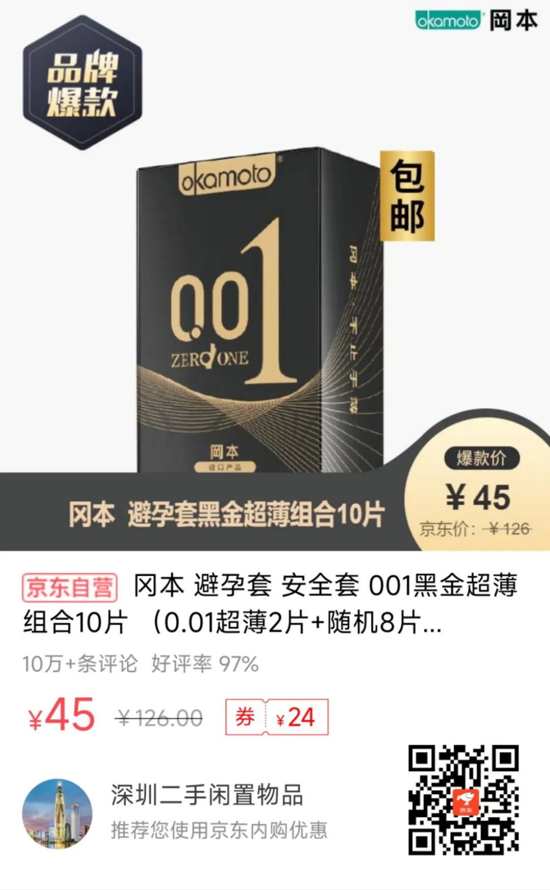 1、【京东】冈本 避孕套黑金超薄组合10片-- 45元