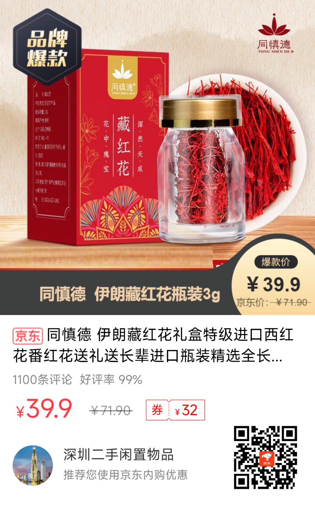 7、【京东】同慎德 伊朗藏红花瓶装3g--39.90