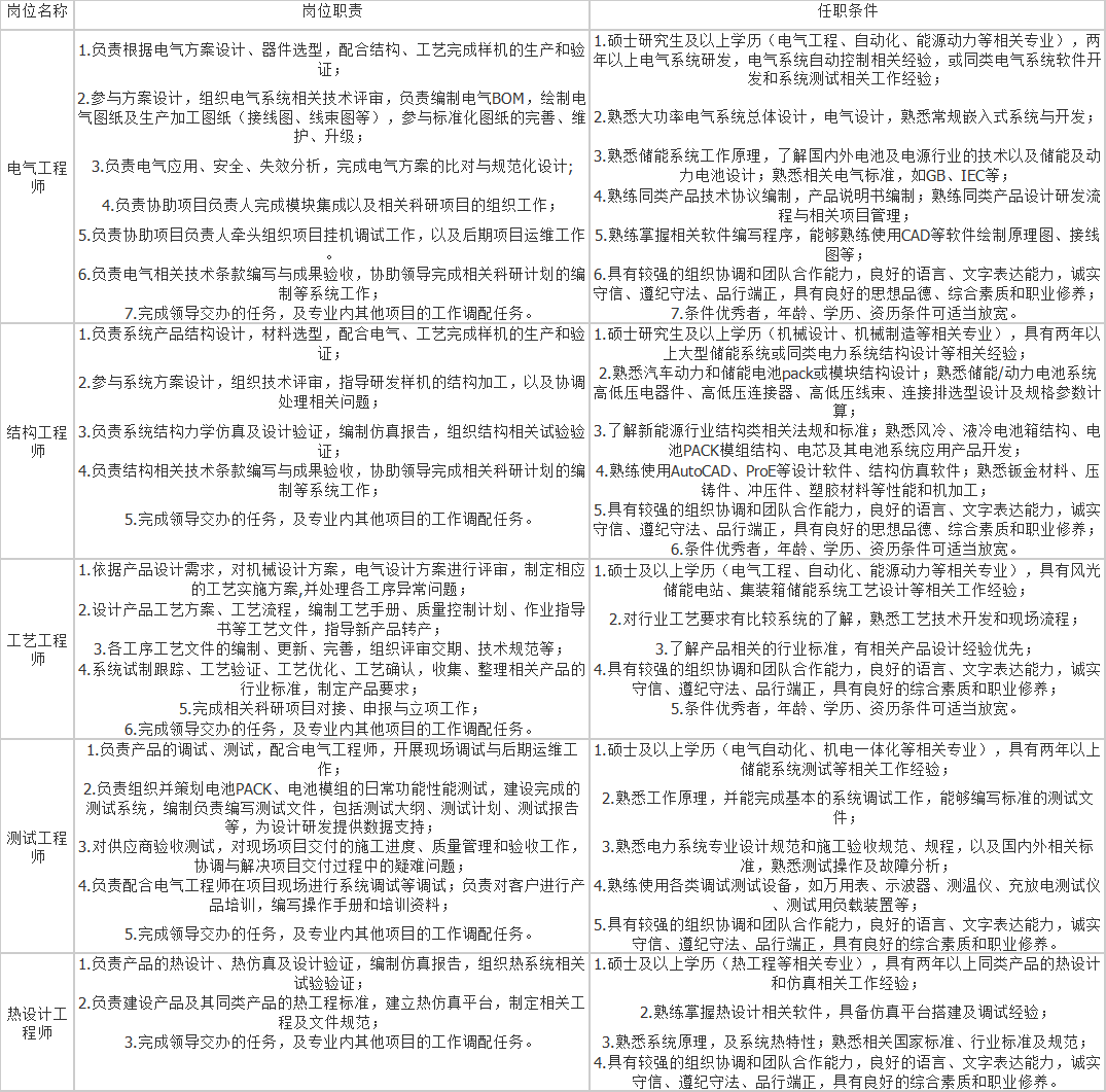 五、招聘岗位、职责及条件