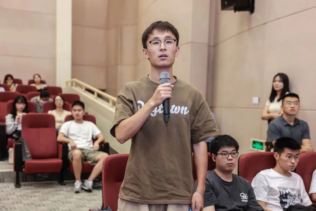 在提问环节,我校机械学院22级研究生徐书彧主动向院士发问,请教王院士在科研中是如何克服困难迎接挑战并取得成功的,能否给当代研究生的科研提供一些宝贵的建议?王院士耐心勉励我院研究生,科研中要瞄准高目标,要面对困难挑战迎难而上,不要退缩畏惧困难和挑战!