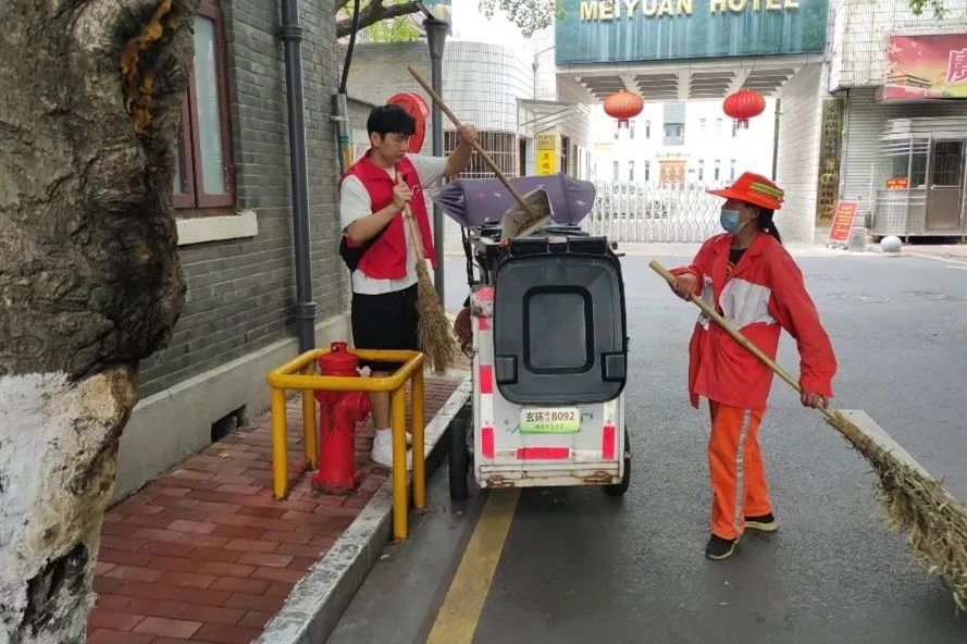 服务团以社区为中心在社区周边街道、商宇对社区居民及群众开展清洁街道、捡拾垃圾等志愿服务活动,同时帮助保洁工人进行清扫街道、分拣垃圾。本次大学生参与垃圾清扫分类工作,引起社区居民的关注,提高居民对垃圾分类的关注度,也营造了良好的绿色环保氛围。