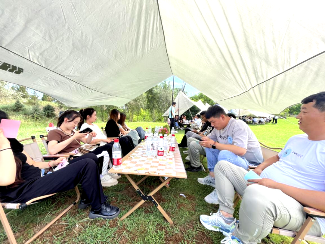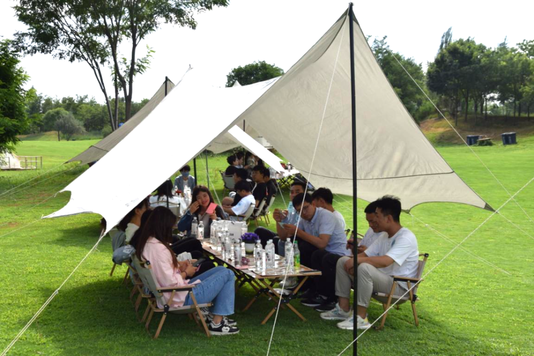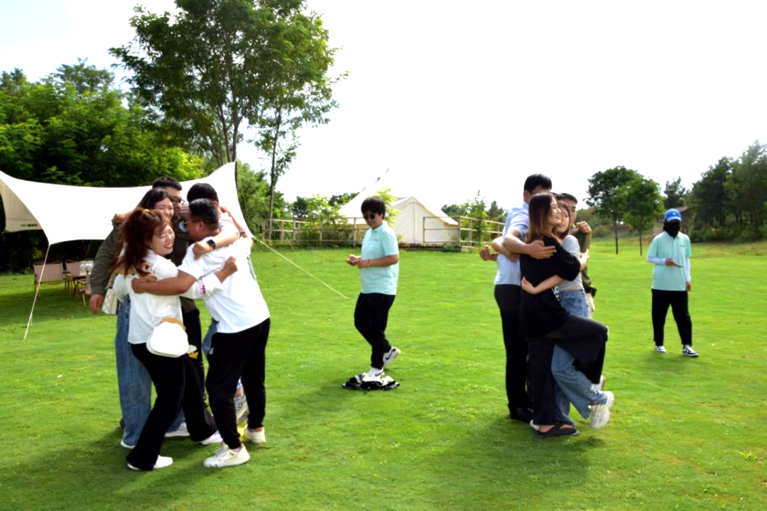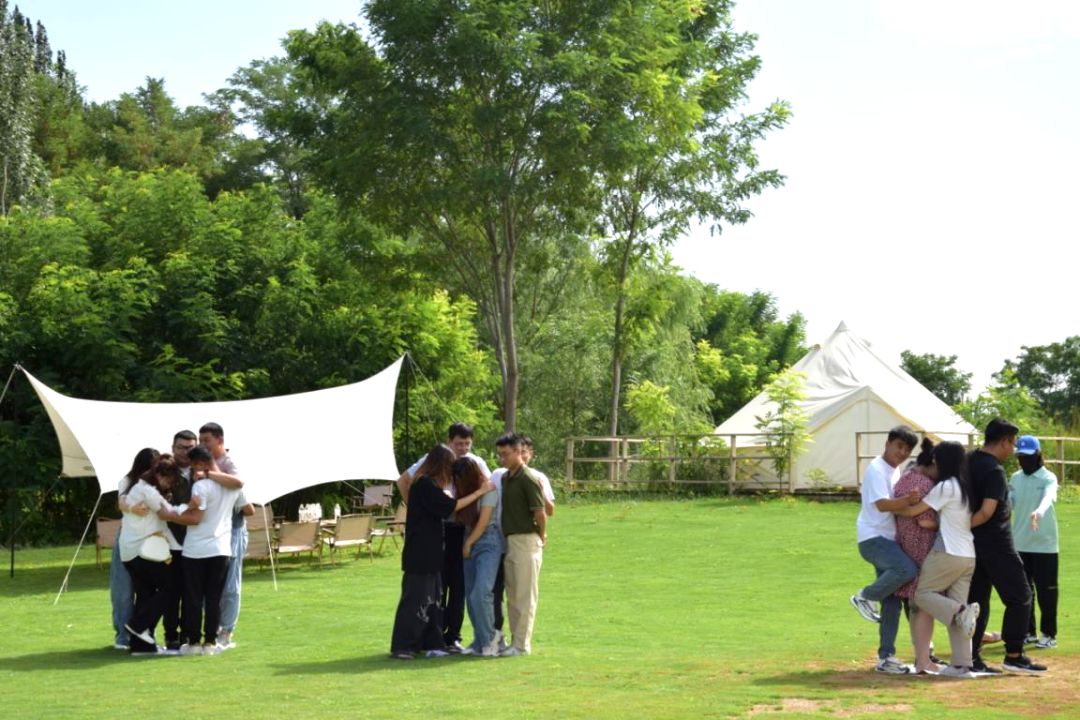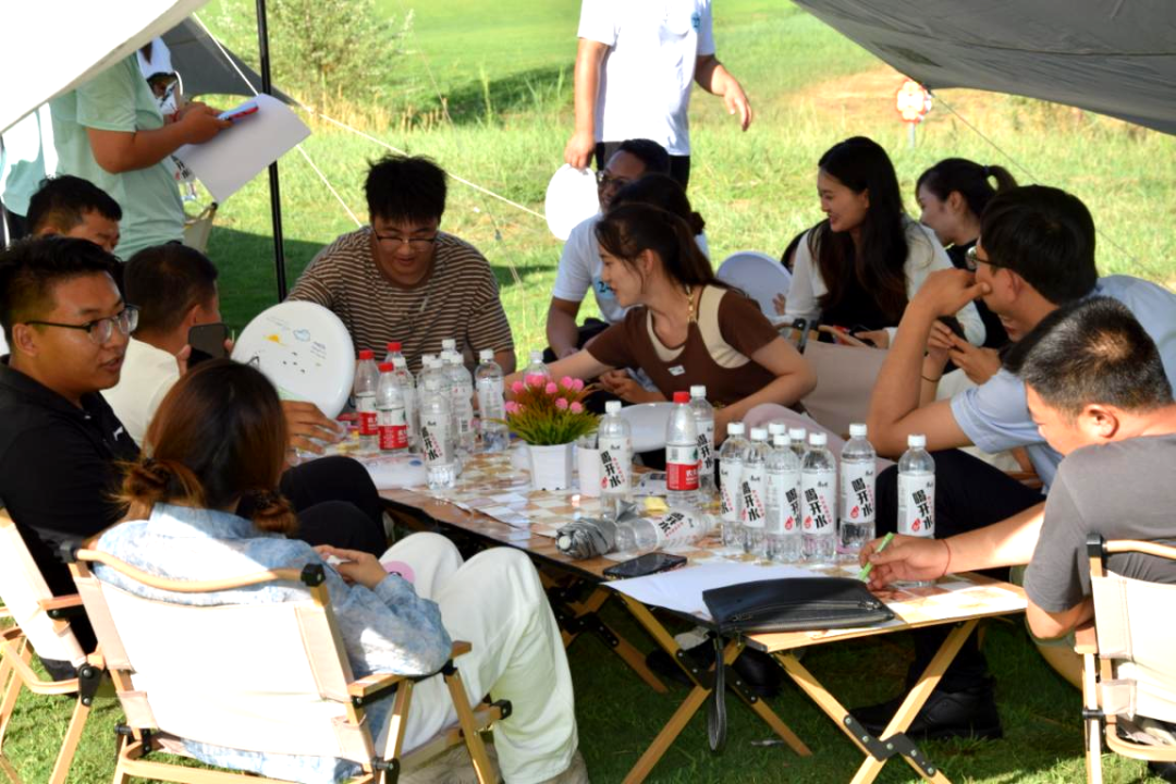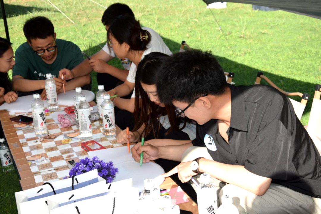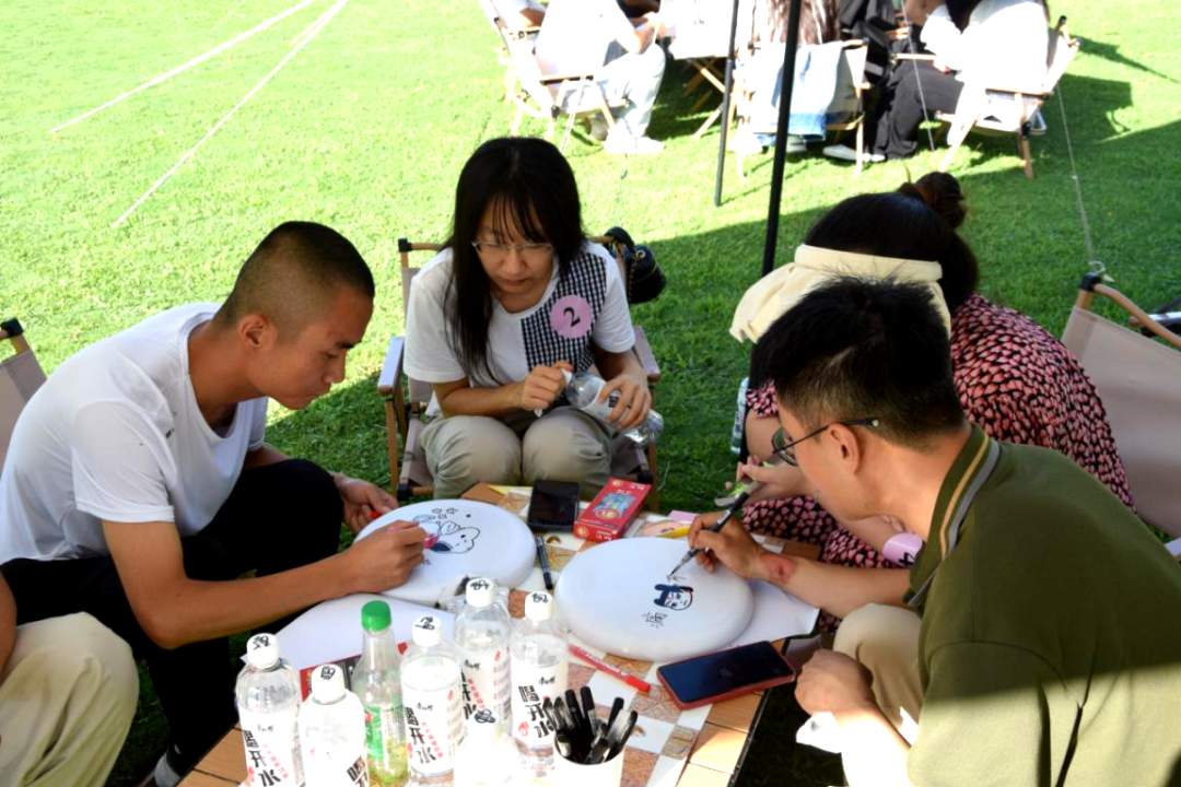 在游戏环节中,通过对飞飞盘、手绘飞盘,感受相互合作的乐趣,增进彼此感情、加深印象、增进了解。