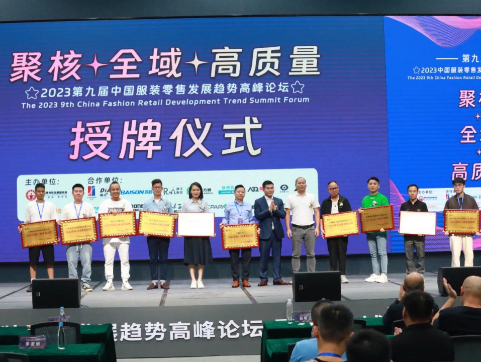此外,会上还有中国零售协会高级顾问、万倾琉璃(重庆)商业规划设计公司创始人马琳先生分享了《如何有效打造线下精益零售》,美国贝恩咨询全球商品战略高级顾问、中国唯一千亿级商品管理操盘手、潘特尔时装CEO潘俊先生提出了《新时代中国服装企业的商品企划》,魔方树商品数智化决策首席顾问肖劲松先生讲述的《商品数智化决策最佳实践》,钡特 (国际)高级培训导师、多家上市集团抖音运营专家张勇先生的《品牌抖音同城矩阵》等许多高质量行业内趋势分析。分享结束后,组委会为吉胜纺织、百胜软件、魔方树等 12 家企业授予“2023年度行业优秀品牌”。广州高校与企业合作促进会为钡特咨询授予执行会长单位牌匾、服装职业教育与产业发展委员会牌匾。