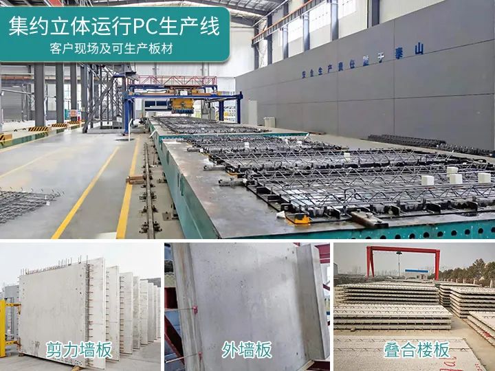 可生产叠合楼板、剪力墙板、立体构件、预制梁/柱、预制楼梯、预制阳台等。